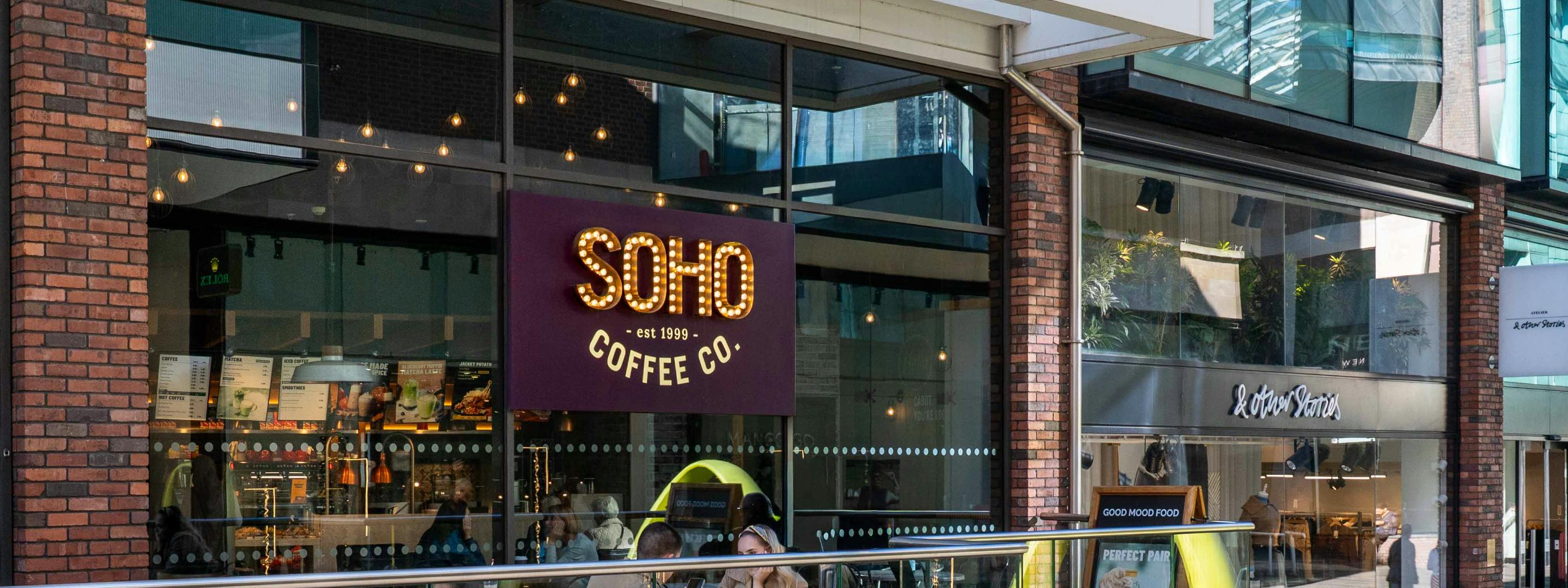 Looking for something fast, fresh and flavoursome? SOHO Coffee serves up brilliant brews — Fairtrade, organic, and Rainforest Alliance Certified™ — alongside handmade food crafted daily in their kitchens. From topped flatbreads and giant spuds to seasonal salads, sandwiches and toasties, there's something for every craving, whether you're veggie, vegan or just after an all-out indulgence. Grab a quick flat white or settle in for brunch — even the kids have their own menu. Swing by and find your new favourite.