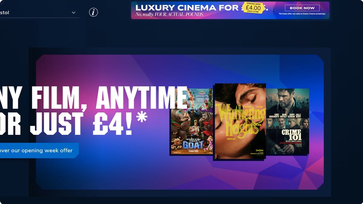 ODEON Luxe features stunning iSense screens with crystal-clear 4K projection and immersive sound, so that every film pulls you straight into the story, no matter where you sit. For an even bigger thrill, you can opt for its IMAX screenings that offer floor-to-ceiling screens and booming sound that make you feel like you’re part of the action.