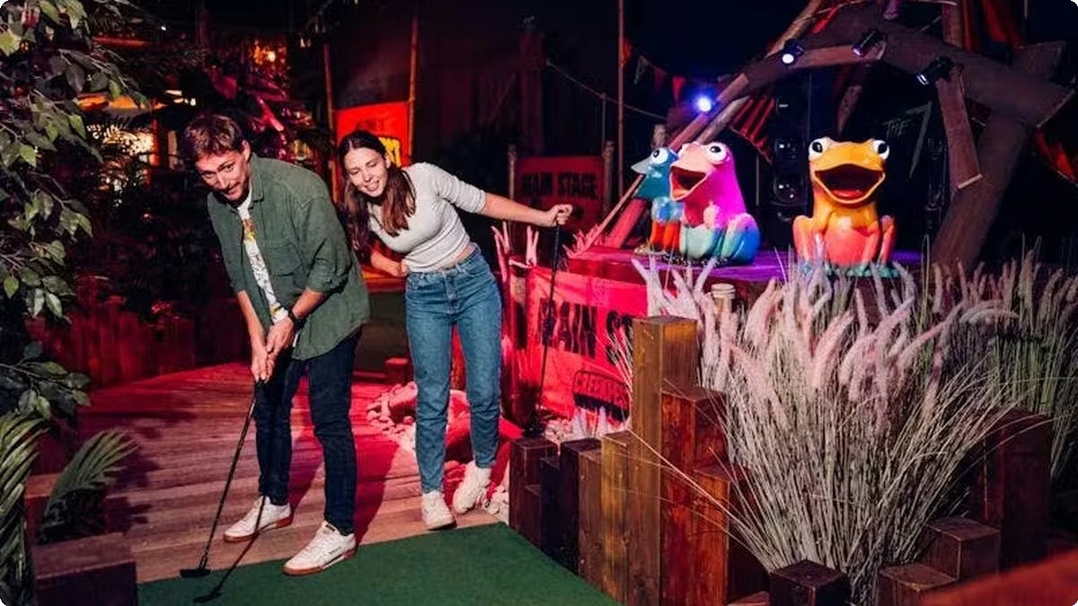 Treetop Golf in Cabot Circus is a jungle-themed mini golf course, a fantastic family activity that blends playful competition with colourful, themed courses. There are two immersive 18-hole mini golf courses (Tropical Trail and Ancient Explorer) that are colourful, imaginative, and perfect for some long-needed family fun.